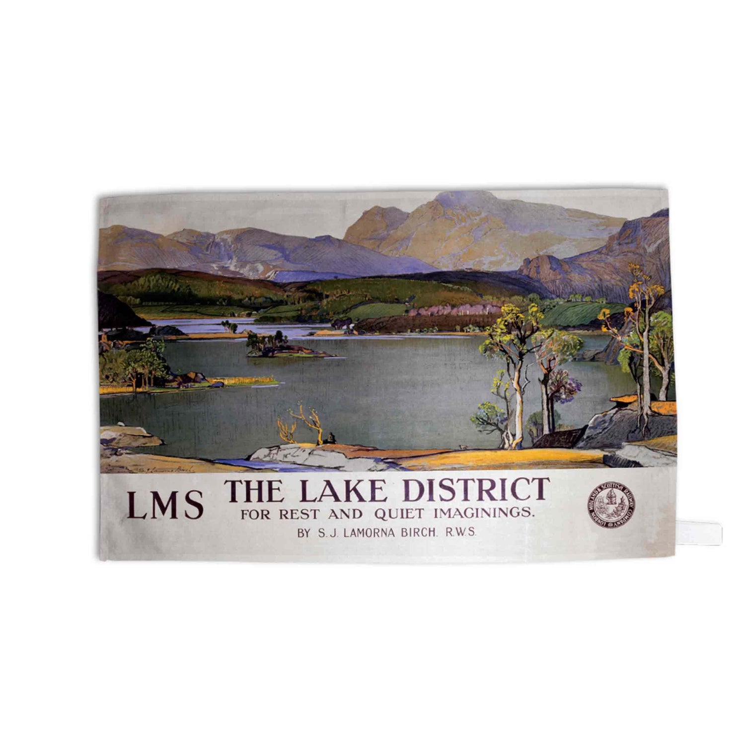 Classic Railway Poster Design on high-quality Tea Towel. This vintage rail design of The Lake District - for Rest and Quiet Imaginings will look great in any kitchen. All made from 100% cotton and hemmed on all four sides along with a handy hanging loop.