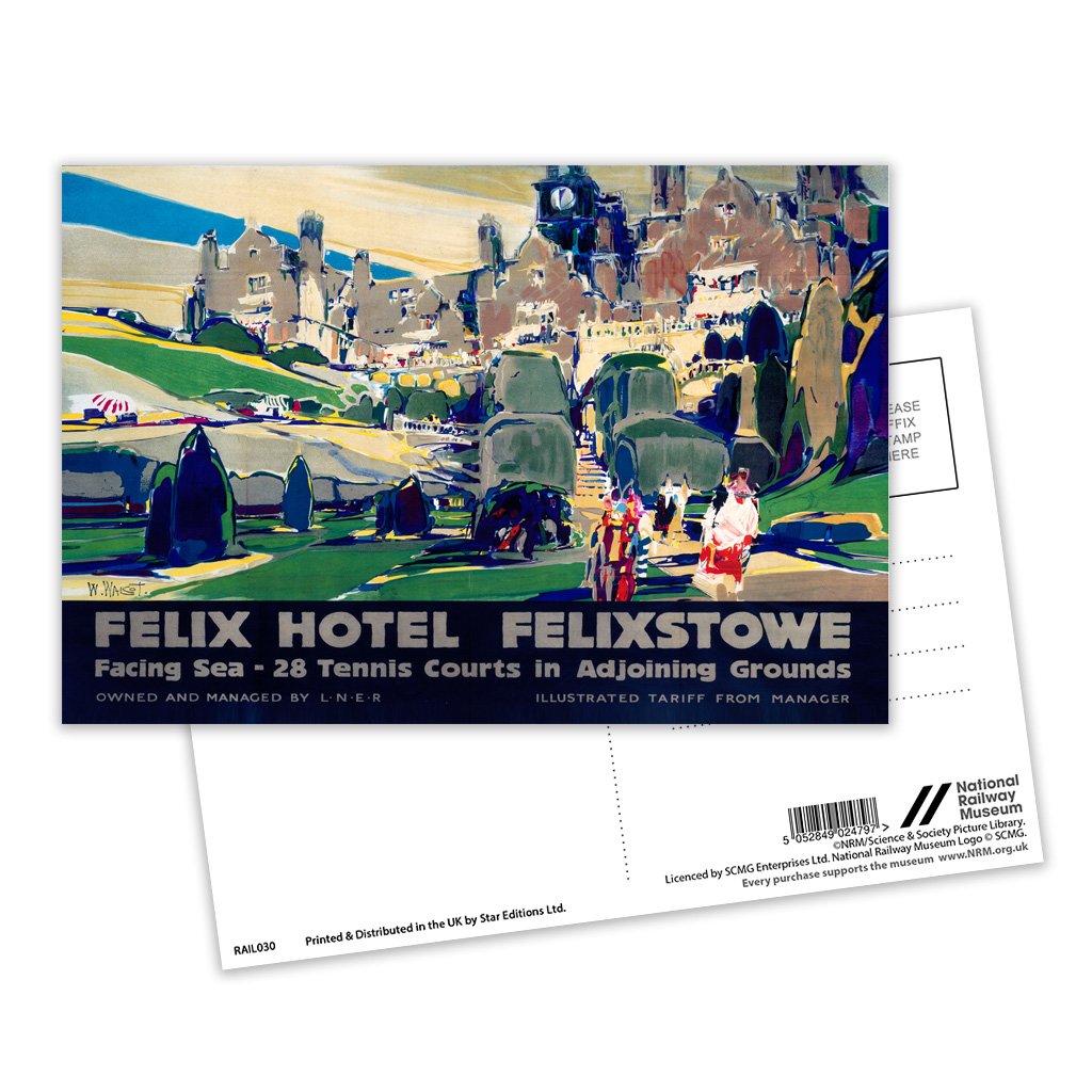 This Vintage Railway Poster postcard pack contains eight postcards. Each printed with the classic poster design of Felix Hotel, Felixstowe. All Railway Poster postcards are made from sustainable materials and is FSC accredited.