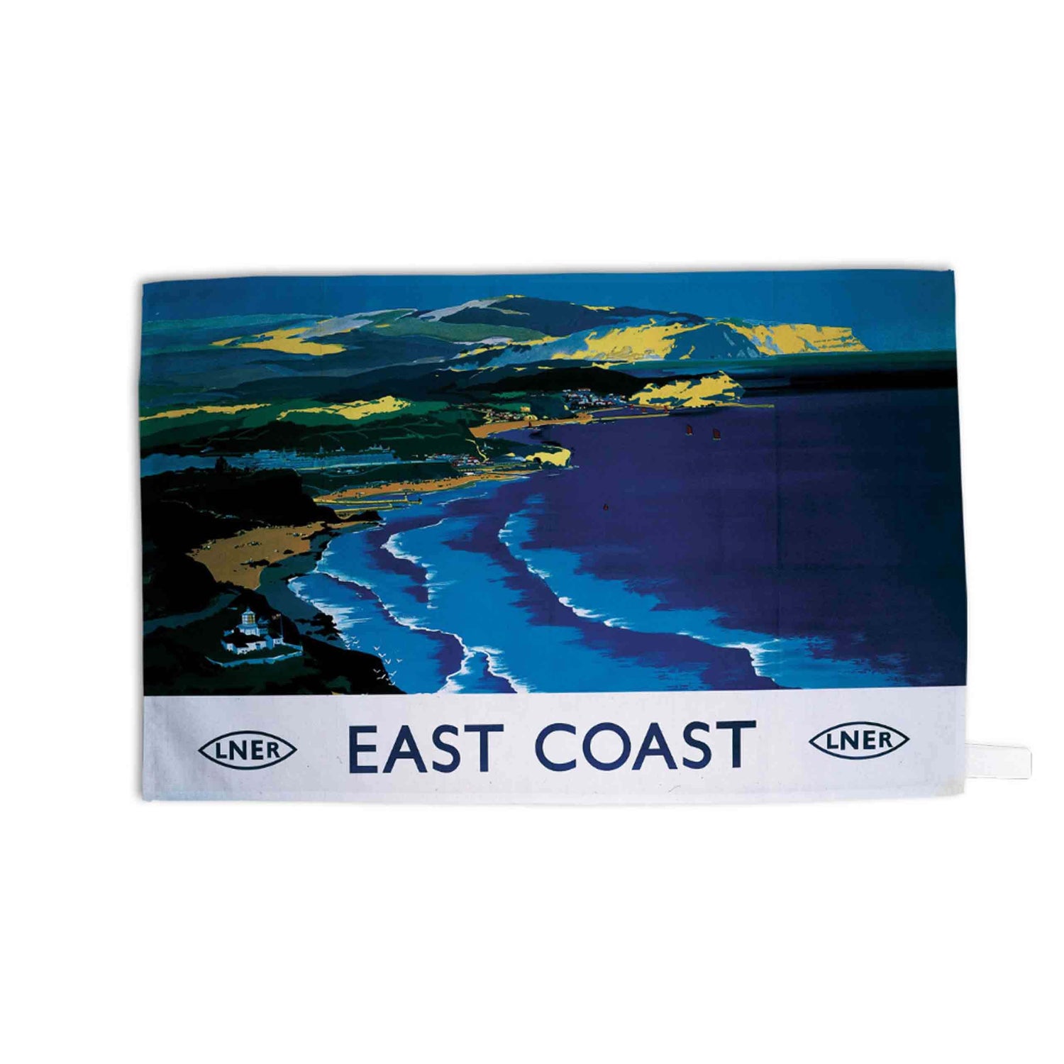 Classic Railway Poster Design on high-quality Tea Towel. This vintage rail design of East Coast will look great in any kitchen. All made from 100% cotton and hemmed on all four sides along with a handy hanging loop.