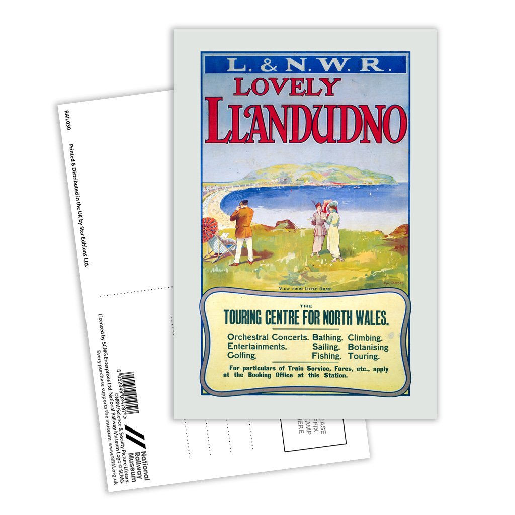 This Vintage Railway Poster postcard pack contains eight postcards. Each printed with the classic poster design of Lovely Llandudno. All Railway Poster postcards are made from sustainable materials and is FSC accredited.
