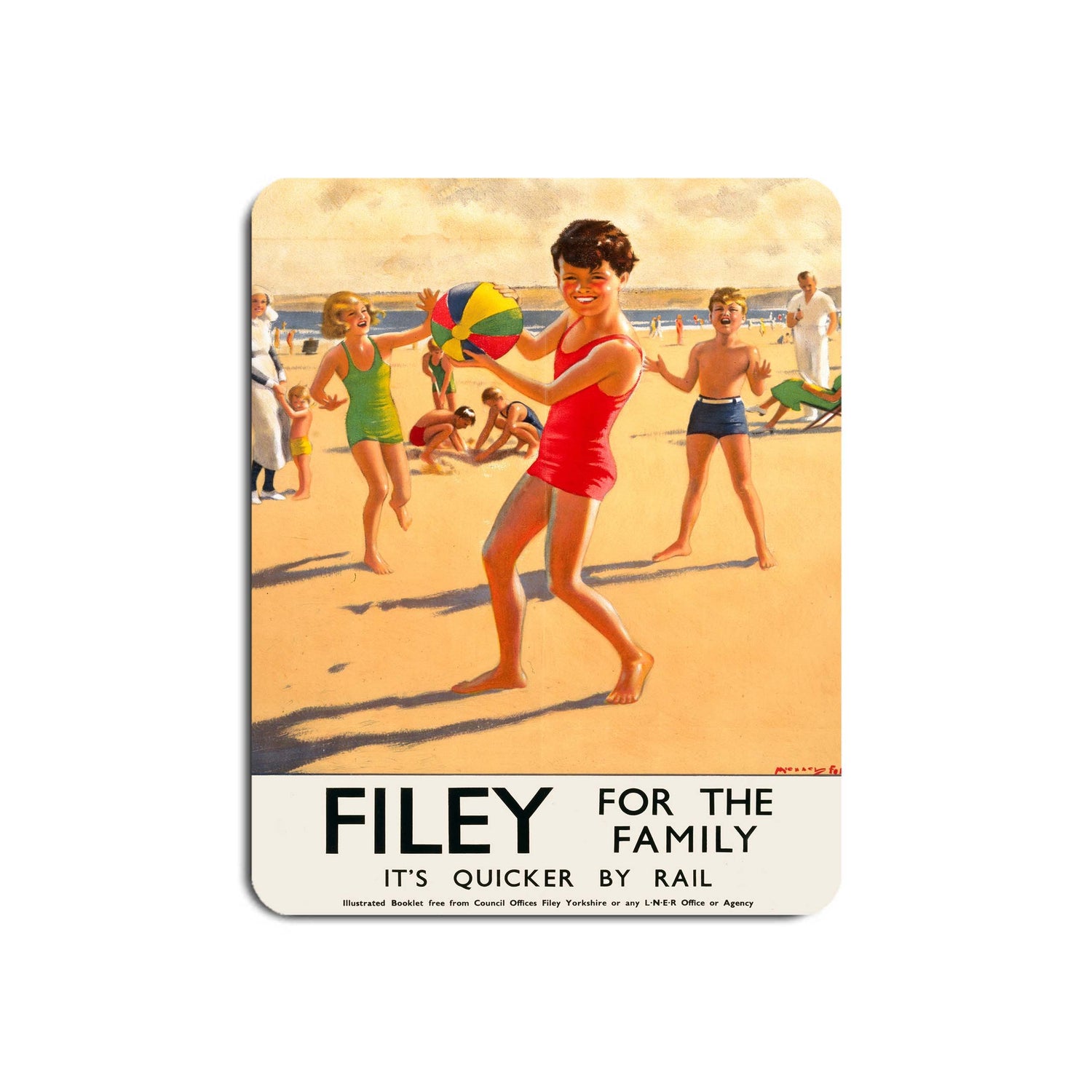 The Filey for the Family Mouse Mat by Railway Posters is perfect for any desk. The surface is suitable for both laser and optical mice and the non-slip rubber base ensures a secure placement on the desk.