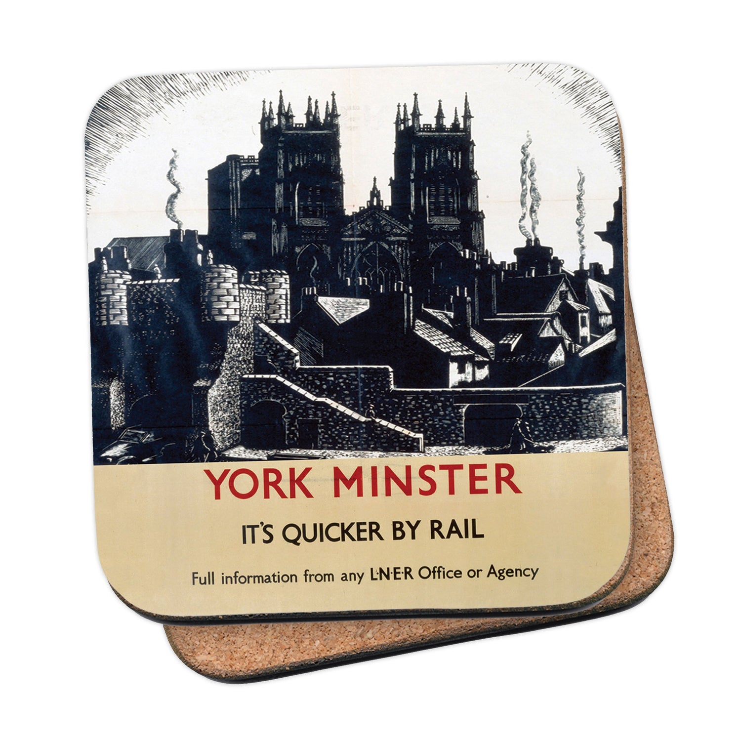 Protect your table surfaces with these durable cork coasters. Beautiful design of York Minster - Black and White. Perfect for any Railway Posters enthusiast.