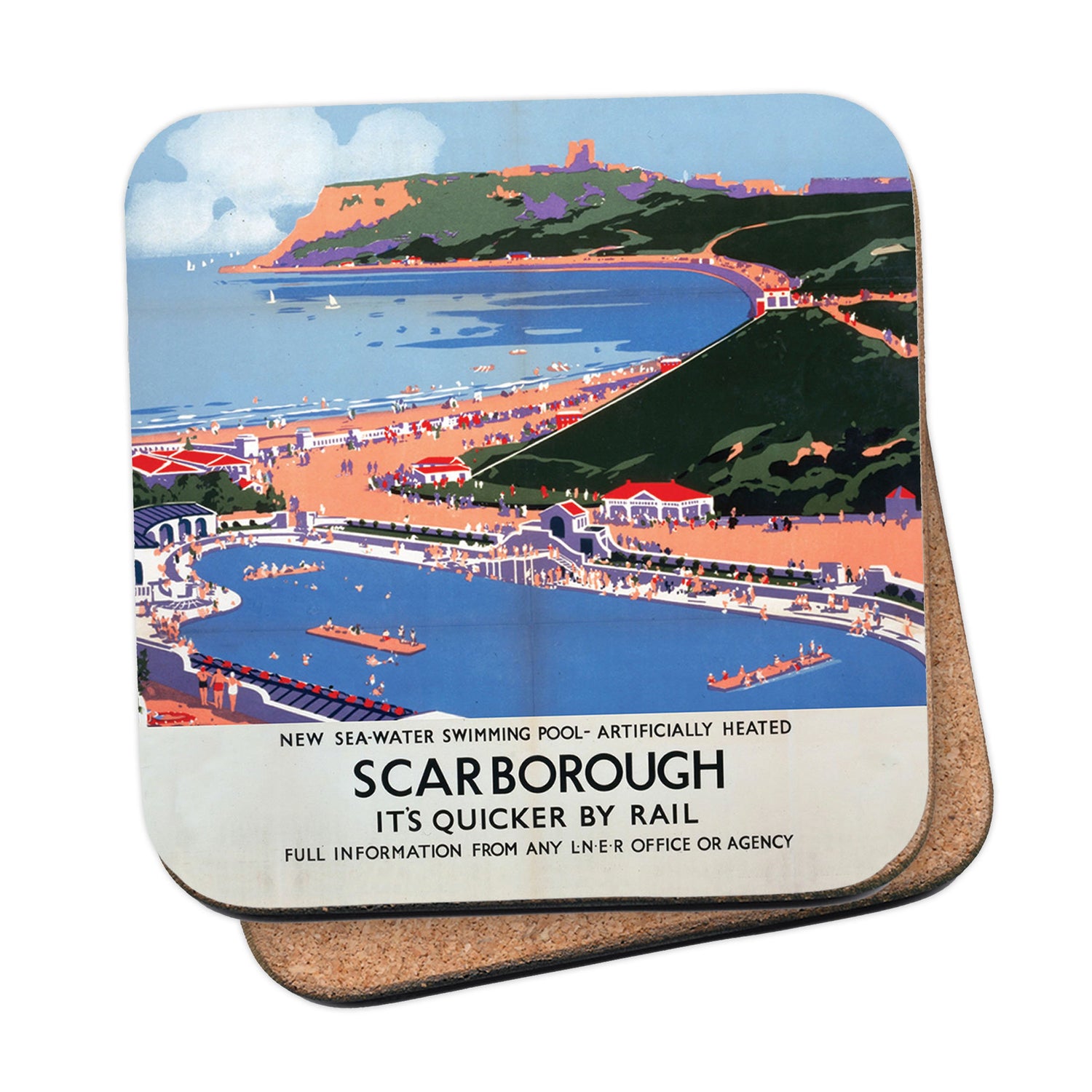 Protect your table surfaces with these durable cork coasters. Beautiful design of Scarborough - Sea-Water Swimming Pool. Perfect for any Railway Posters enthusiast.