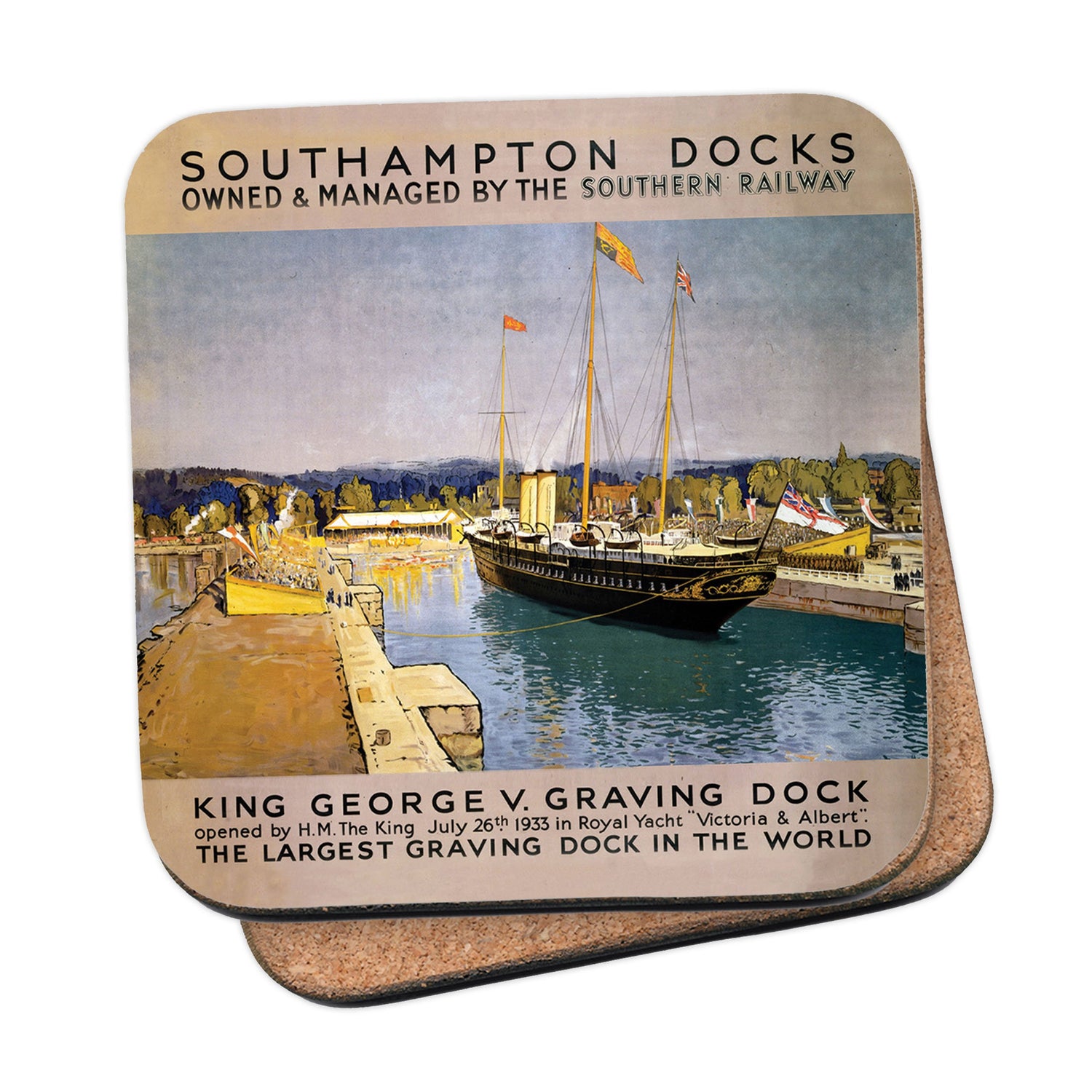 Protect your table surfaces with these durable cork coasters. Beautiful design of Southampton Docks. Perfect for any Railway Posters enthusiast.