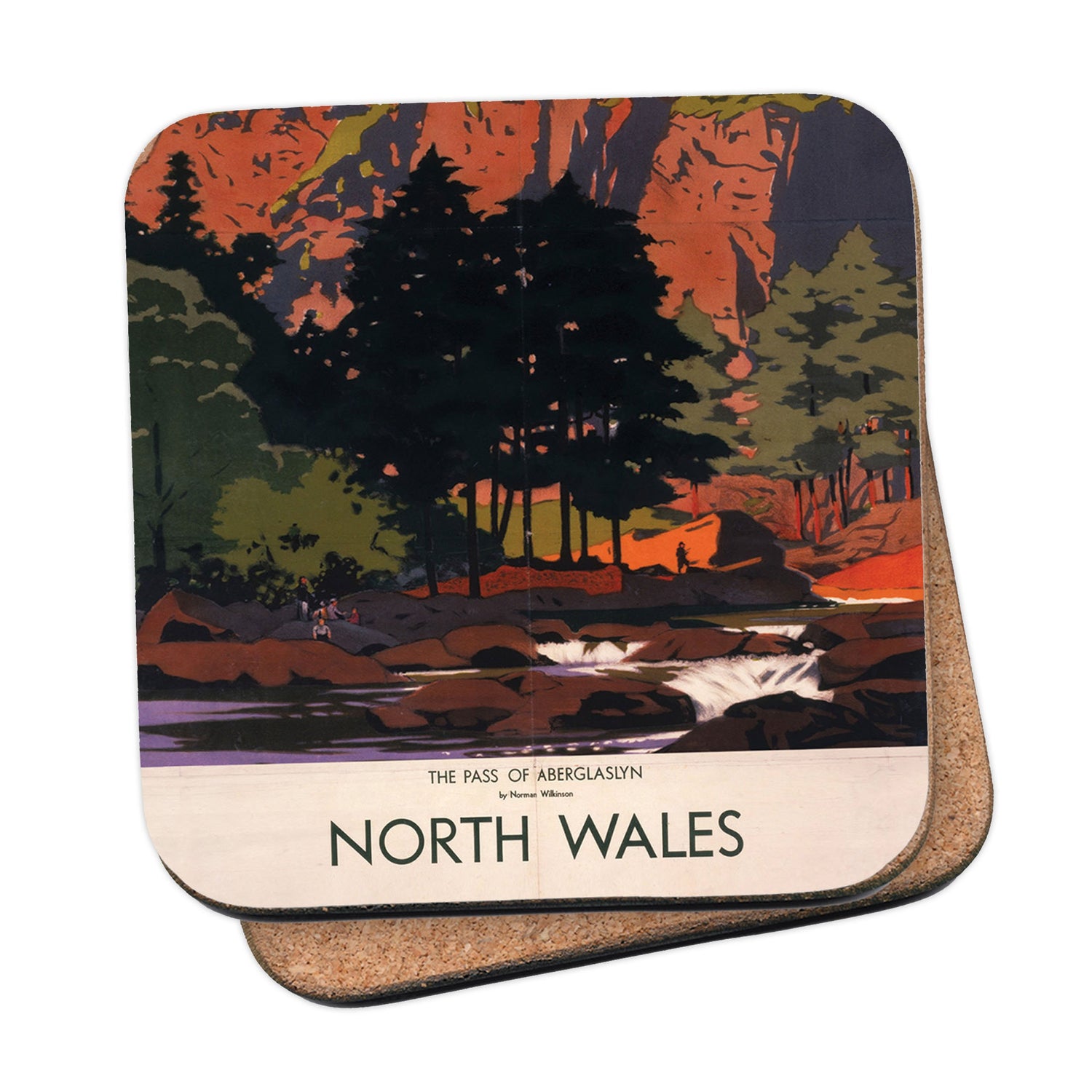 Protect your table surfaces with these durable cork coasters. Beautiful design of North Wales, the Pass of Aberglaslyn. Perfect for any Railway Posters enthusiast.