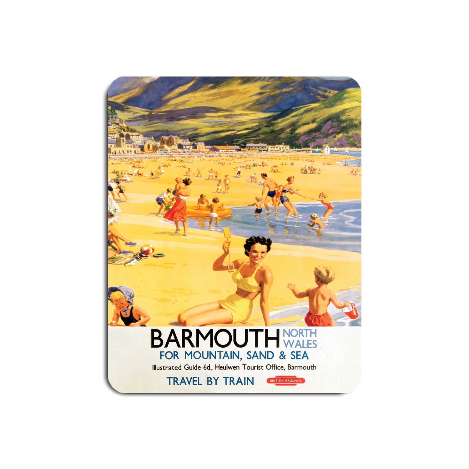 The Barmouth North Wales for Mountain, Sand and Sea Mouse Mat by Railway Posters is perfect for any desk. The surface is suitable for both laser and optical mice and the non-slip rubber base ensures a secure placement on the desk.