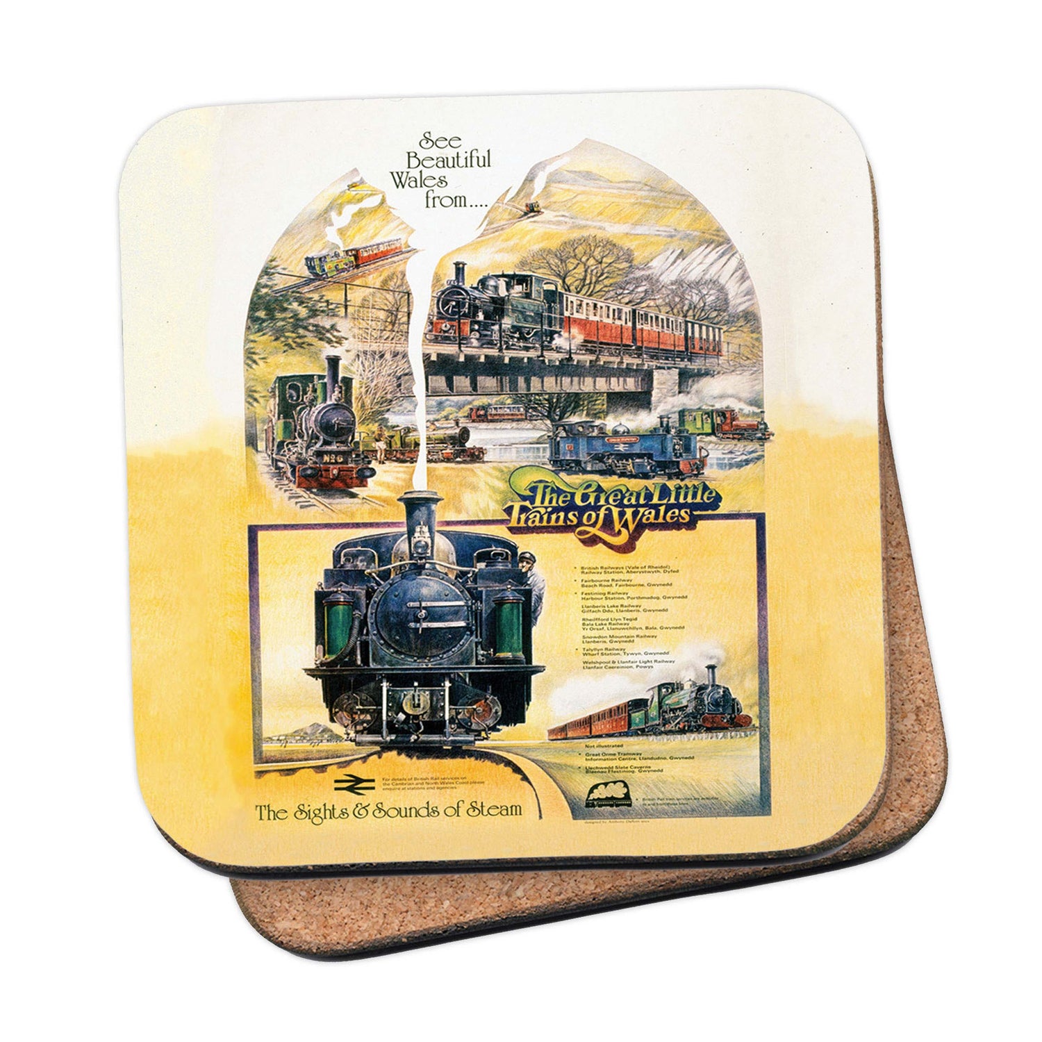 Protect your table surfaces with these durable cork coasters. Beautiful design of The Great Little Trains of Wales - the sights and sounds of steam. Perfect for any Railway Posters enthusiast.