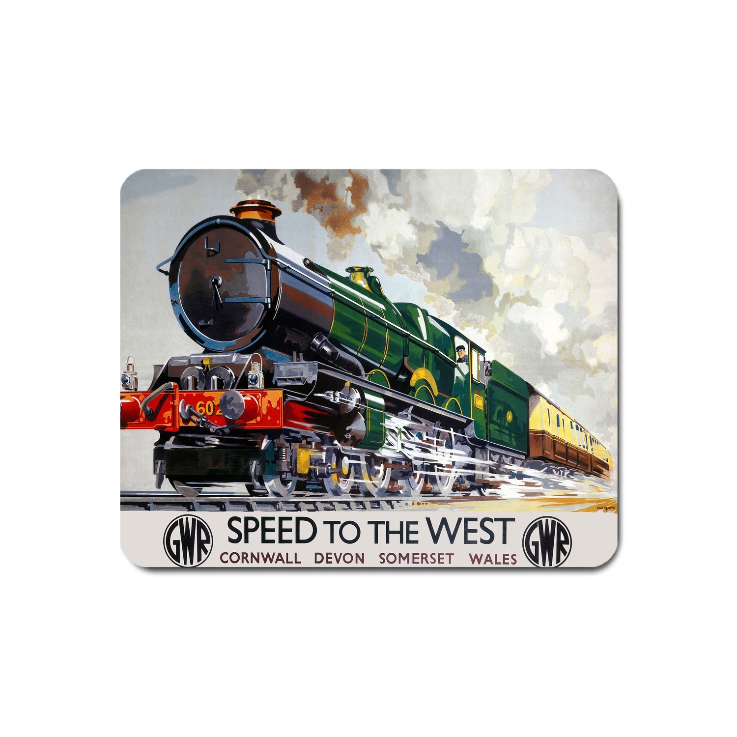 The Speed to the West - Cornwall, Devon, Somerset, Wales Mouse Mat by Railway Posters is perfect for any desk. The surface is suitable for both laser and optical mice and the non-slip rubber base ensures a secure placement on the desk.