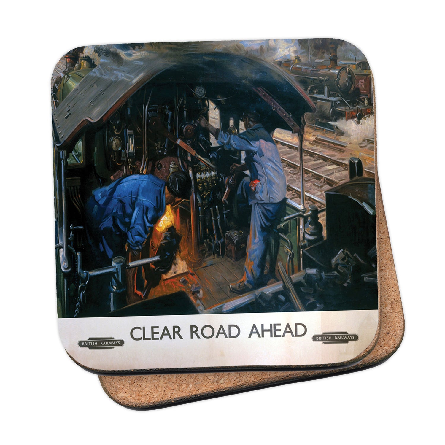 Protect your table surfaces with these durable cork coasters. Beautiful design of Clear Road Ahead - Monmouth Castle. Perfect for any Railway Posters enthusiast.