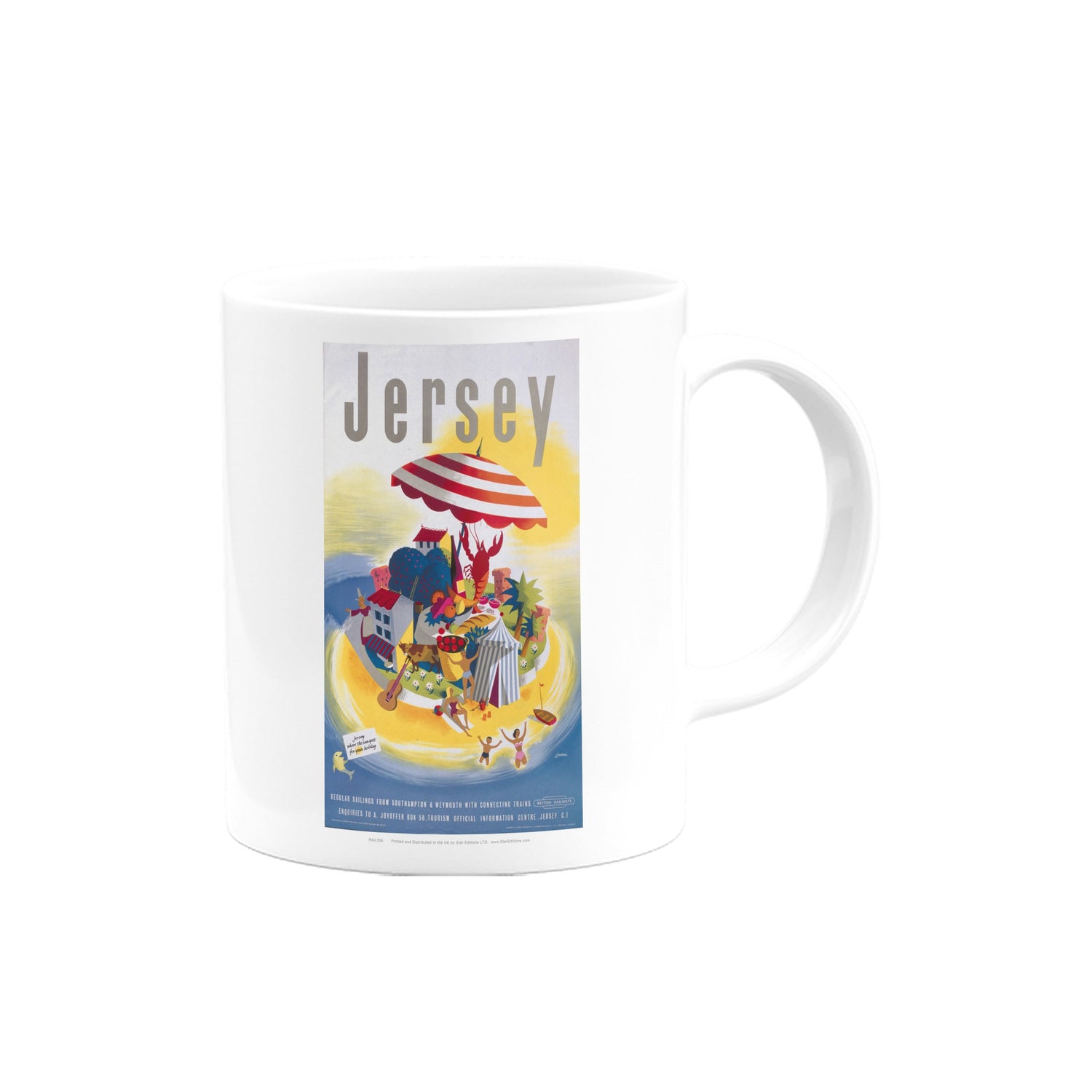 Your favourite Vintage Railway Poster design on a mug. This design of Jersey, from Southampton and Weymouth is perfect for a nice cup of tea or coffee. Great as a gift to any Railway Poster enthusiast.