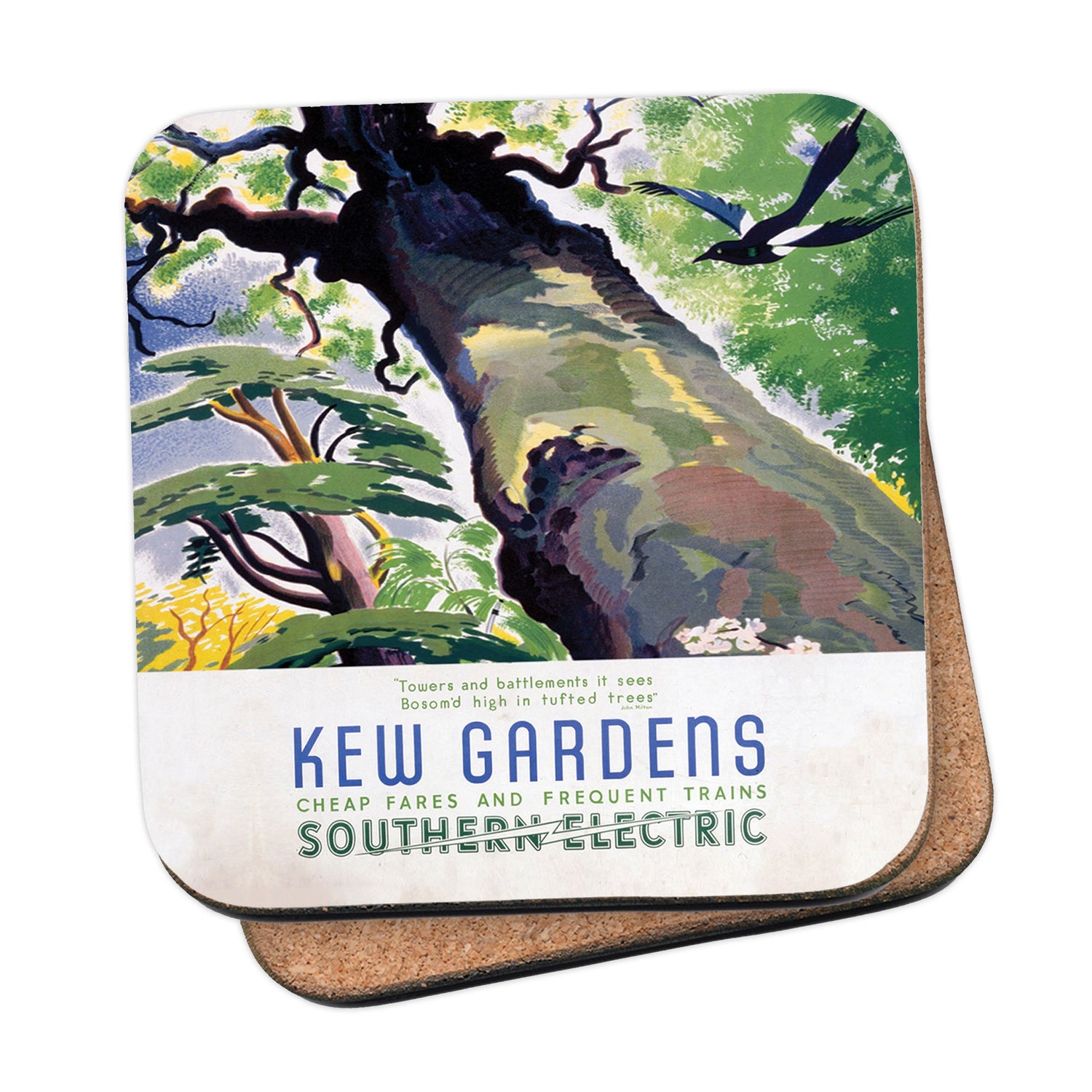 Protect your table surfaces with these durable cork coasters. Beautiful design of Kew Gardens - Southern Electric. Perfect for any Railway Posters enthusiast.