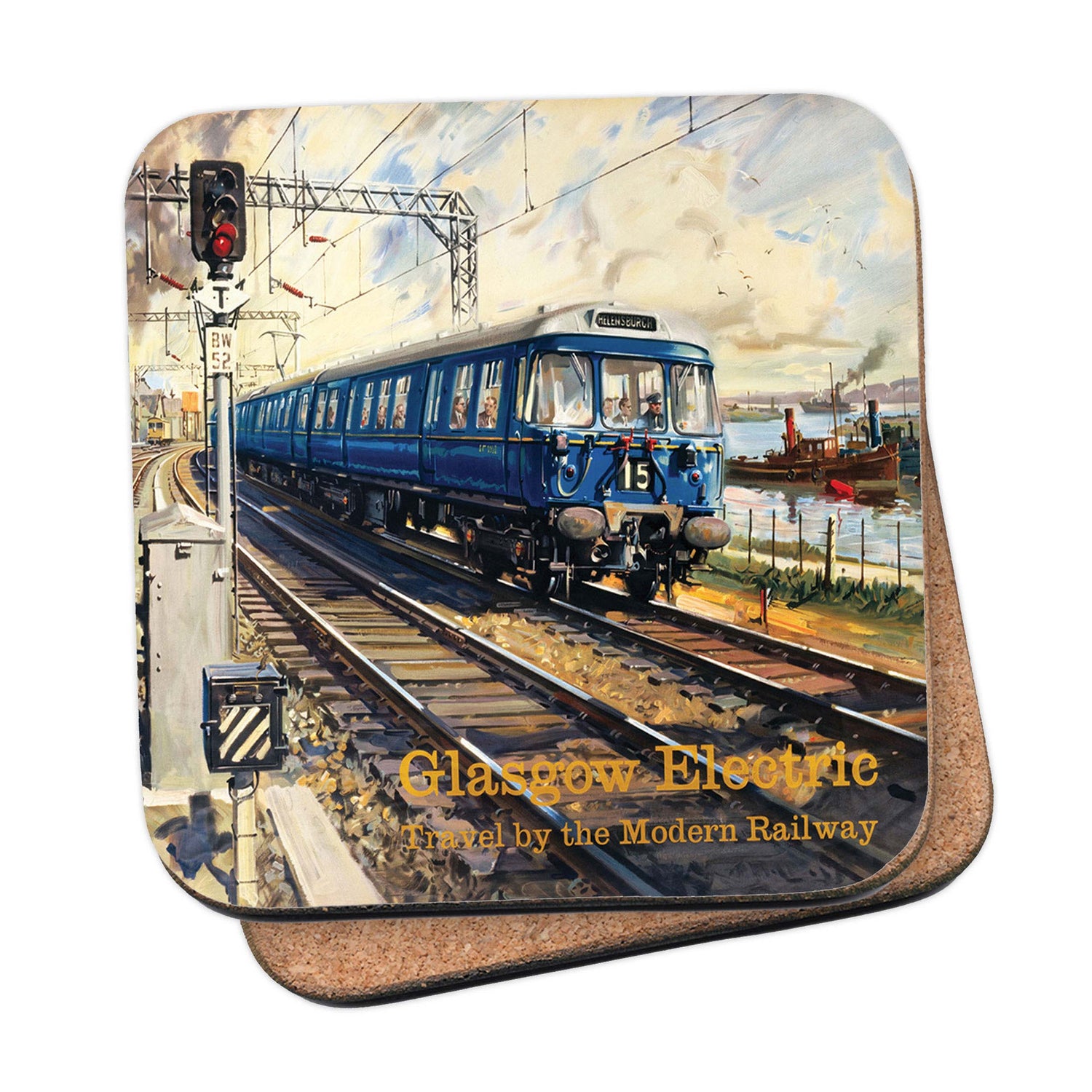 Protect your table surfaces with these durable cork coasters. Beautiful design of Glasgow Electric - Travel by the Modern Railway. Perfect for any Railway Posters enthusiast.