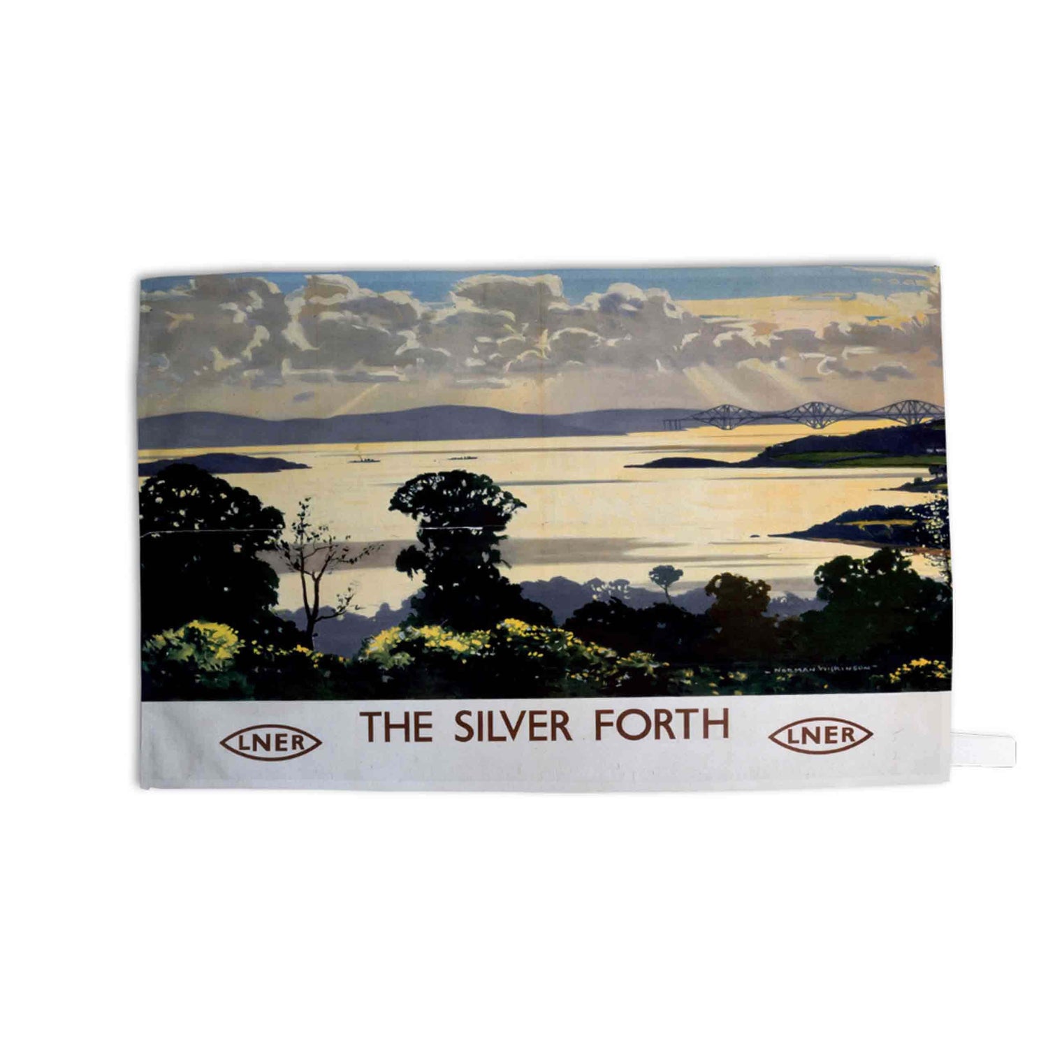 Classic Railway Poster Design on high-quality Tea Towel. This vintage rail design of The Silver Forth will look great in any kitchen. All made from 100% cotton and hemmed on all four sides along with a handy hanging loop.