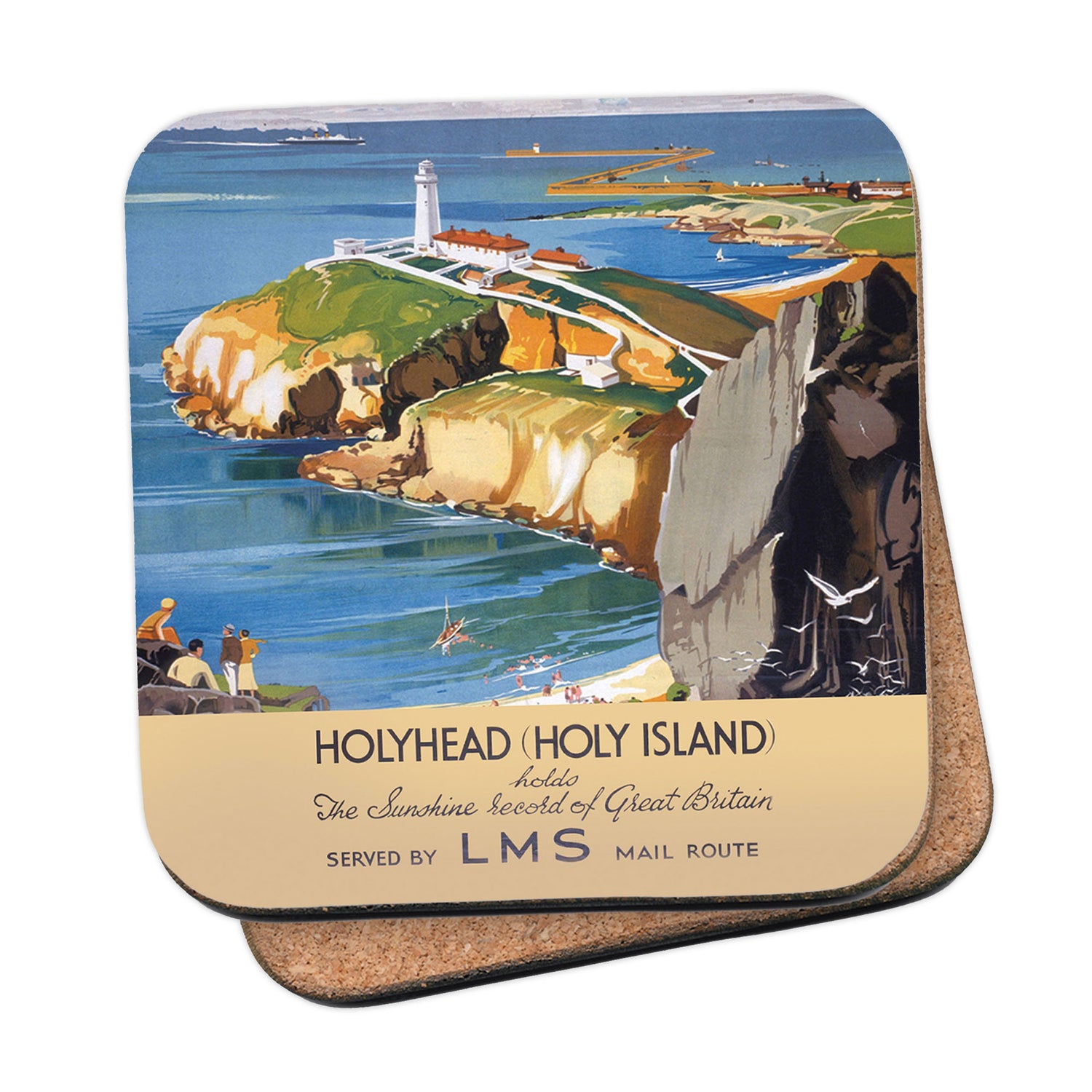 Protect your table surfaces with these durable cork coasters. Beautiful design of Holy Island - Sunshine Record Of Britain LMS. Perfect for any Railway Posters enthusiast.