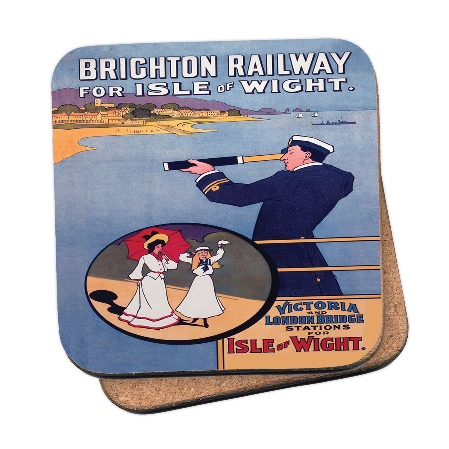 Protect your table surfaces with these durable cork coasters. Beautiful design of Brighton Railway for Isle Of Wight. Perfect for any Railway Posters enthusiast.