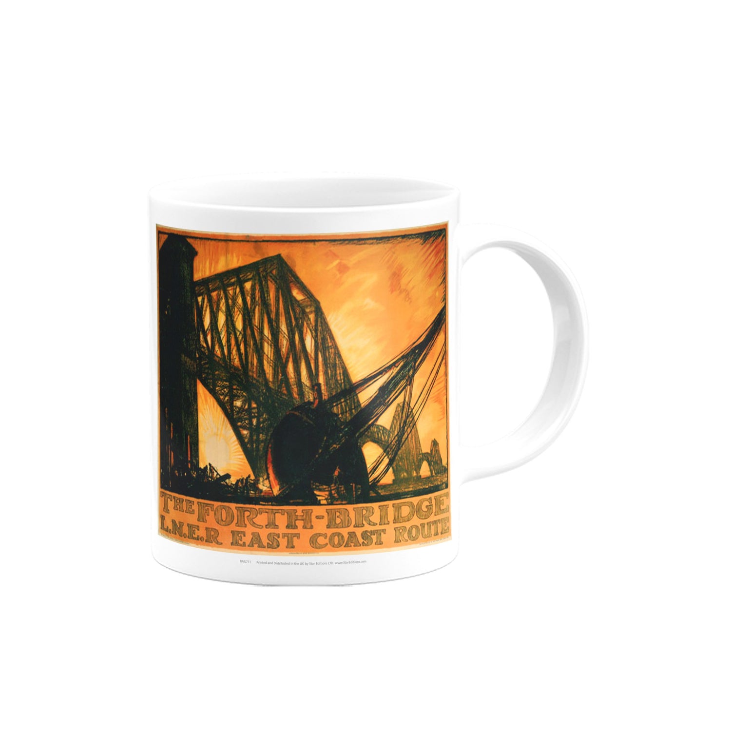 Your favourite Vintage Railway Poster design on a mug. This design of The Forth Bridge - LNER East Coast Route is perfect for a nice cup of tea or coffee. Great as a gift to any Railway Poster enthusiast.