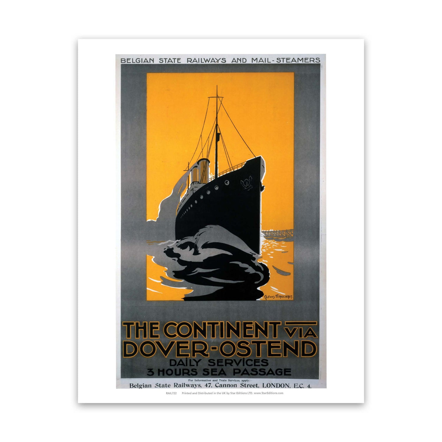 Vintage Railway Poster print of Dover-ostend the continent 3 hour passage. All Railway Posters are printed on high quality eco-friendly paper and are available in multiple sizes. The 11x14 inch sizes are also available with two framed options, perfect to adorn any wall in your home or office.
