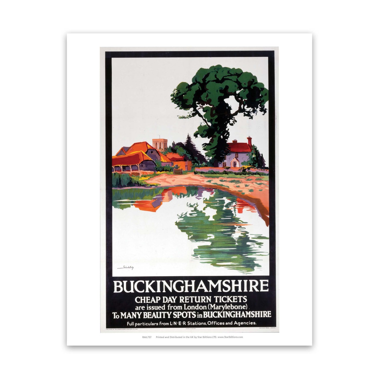 Vintage Railway Poster print of Buckinghamshire Cheap day return to many beauty spots. All Railway Posters are printed on high quality eco-friendly paper and are available in multiple sizes. The 11x14 inch sizes are also available with two framed options, perfect to adorn any wall in your home or office.