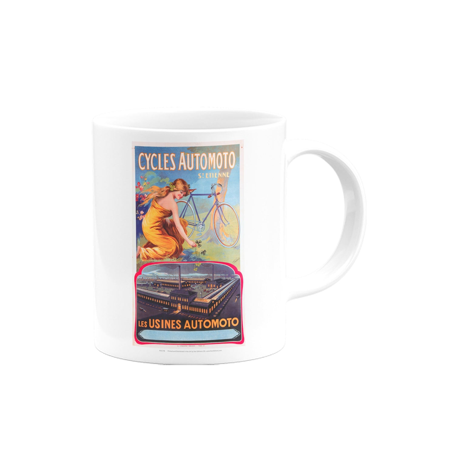 Your favourite Vintage Railway Poster design on a mug. This design of Cycles Automoto - Les Usines Automoto is perfect for a nice cup of tea or coffee. Great as a gift to any Railway Poster enthusiast.