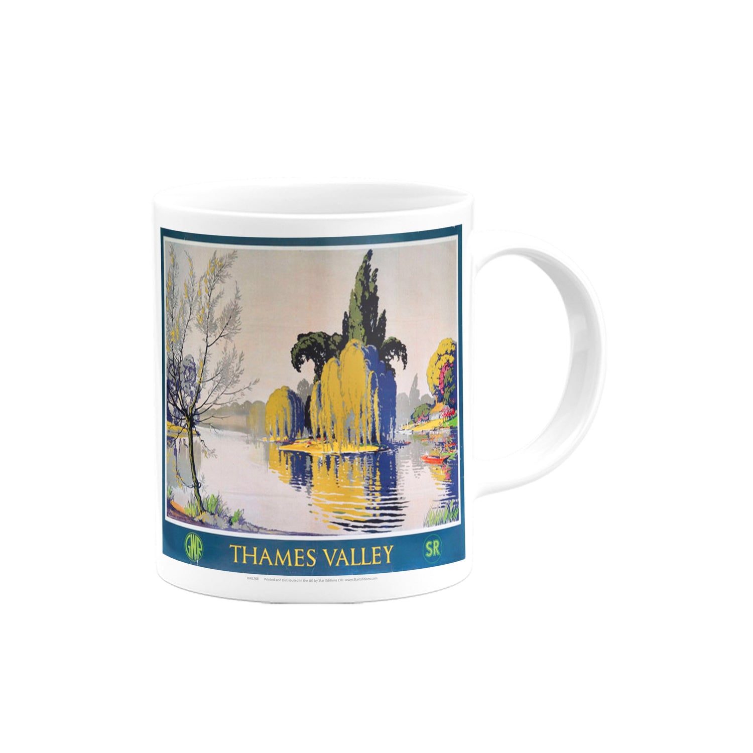 Your favourite Vintage Railway Poster design on a mug. This design of Thames Valley - GWR and Southern Railway is perfect for a nice cup of tea or coffee. Great as a gift to any Railway Poster enthusiast.