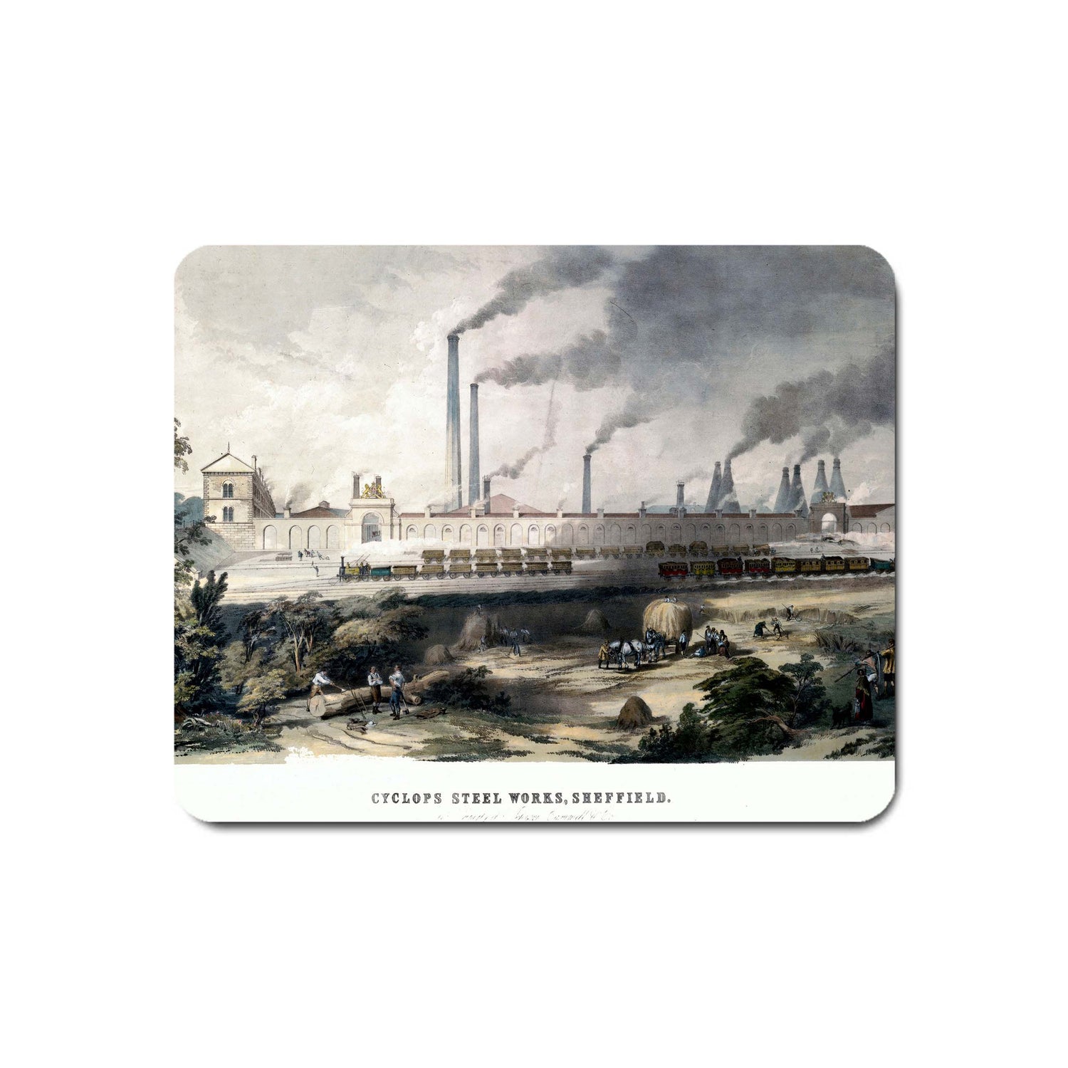 The Cyclops Steel works Sheffield Mouse Mat by Railway Posters is perfect for any desk. The surface is suitable for both laser and optical mice and the non-slip rubber base ensures a secure placement on the desk.