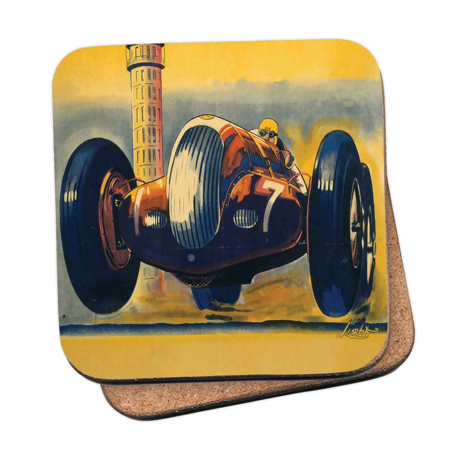 Protect your table surfaces with these durable cork coasters. Beautiful design of Number 7 Race car. Perfect for any Railway Posters enthusiast.