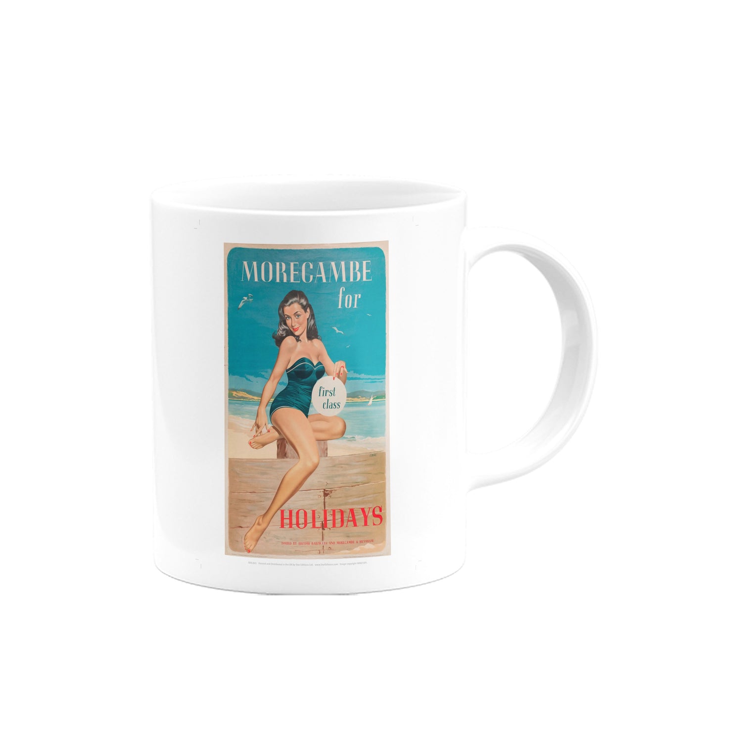Your favourite Vintage Railway Poster design on a mug. This design of Morecambe for Holidays - 'First Class' is perfect for a nice cup of tea or coffee. Great as a gift to any Railway Poster enthusiast.