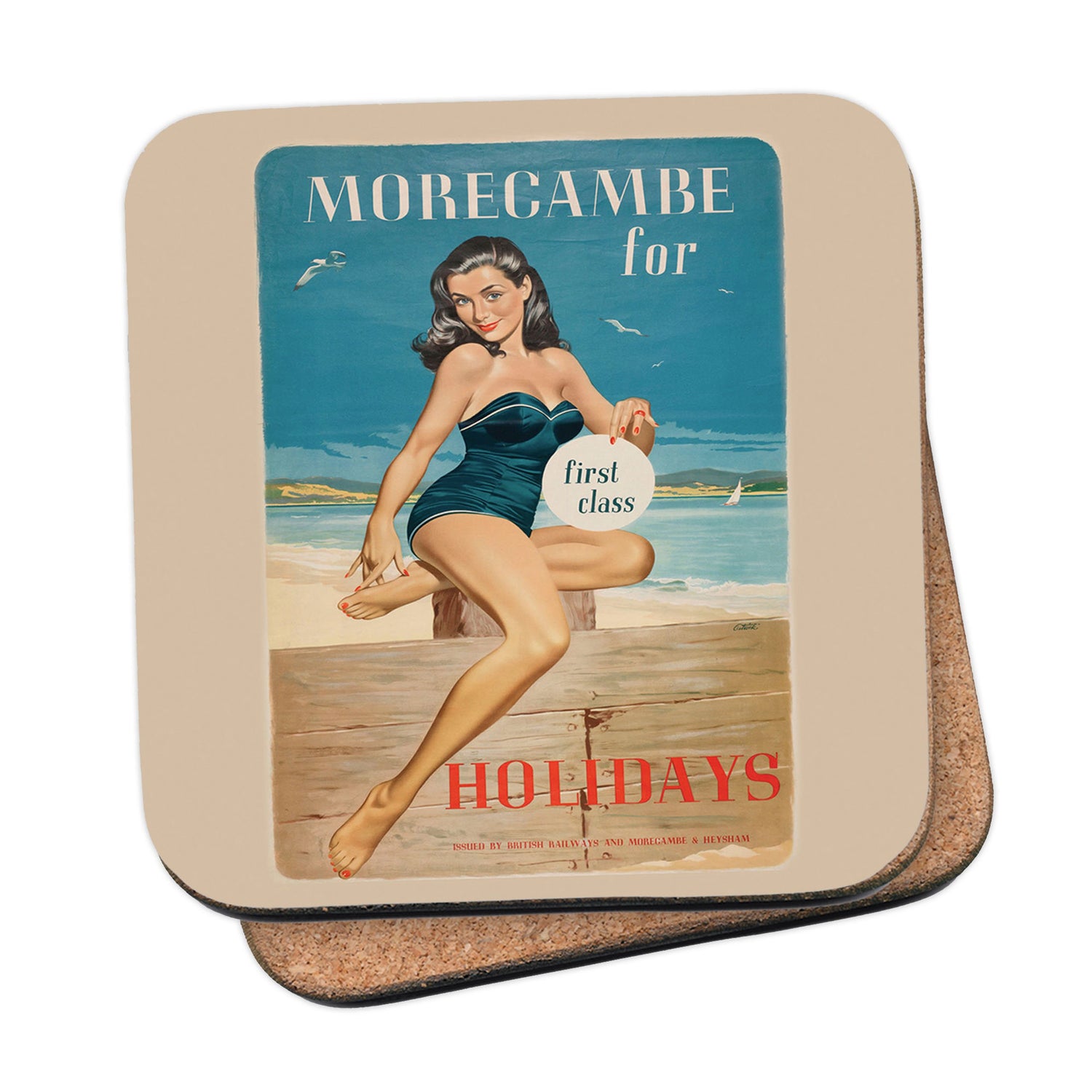 Protect your table surfaces with these durable cork coasters. Beautiful design of Morecambe for Holidays - 'First Class'. Perfect for any Railway Posters enthusiast.