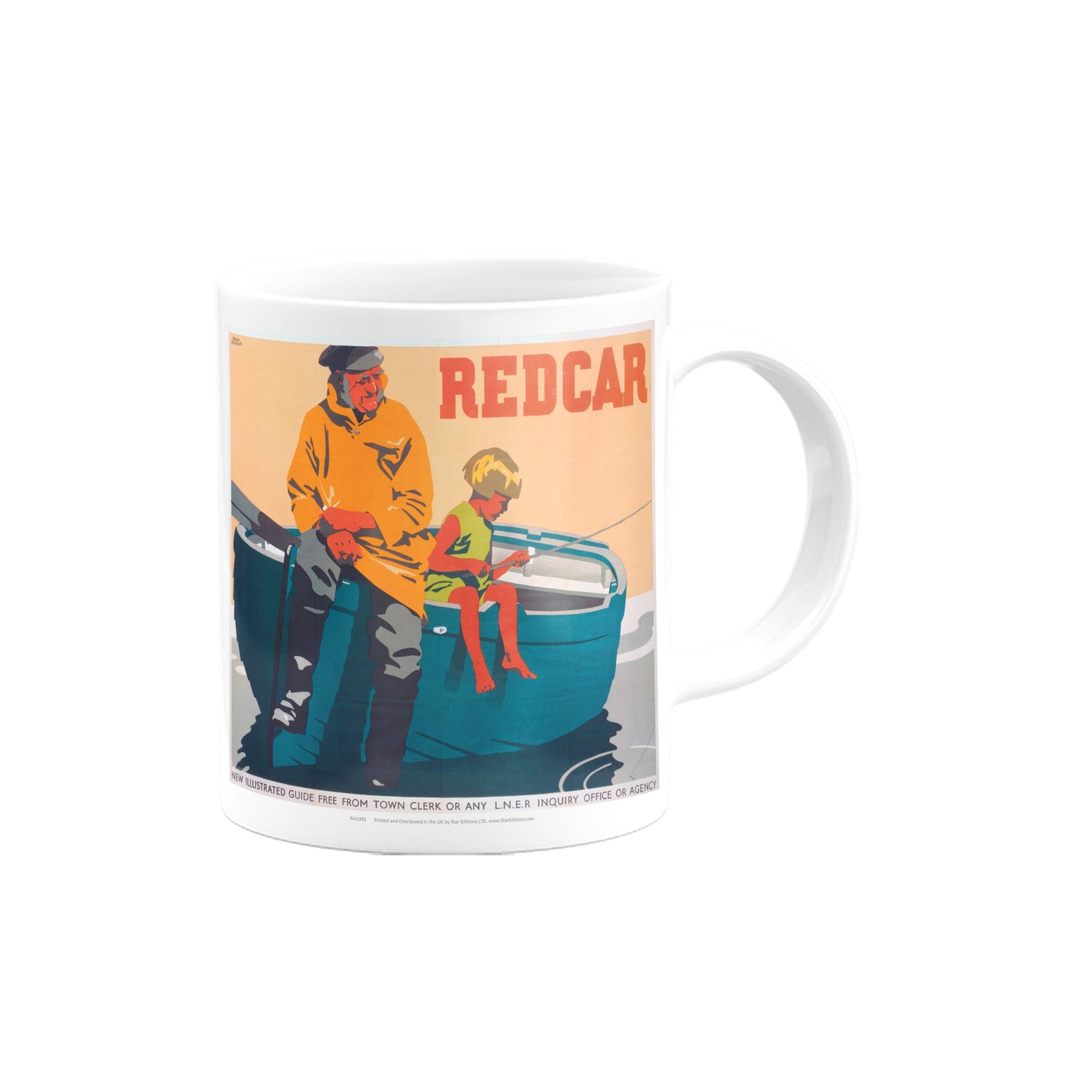 Your favourite Vintage Railway Poster design on a mug. This design of Redcar is perfect for a nice cup of tea or coffee. Great as a gift to any Railway Poster enthusiast.