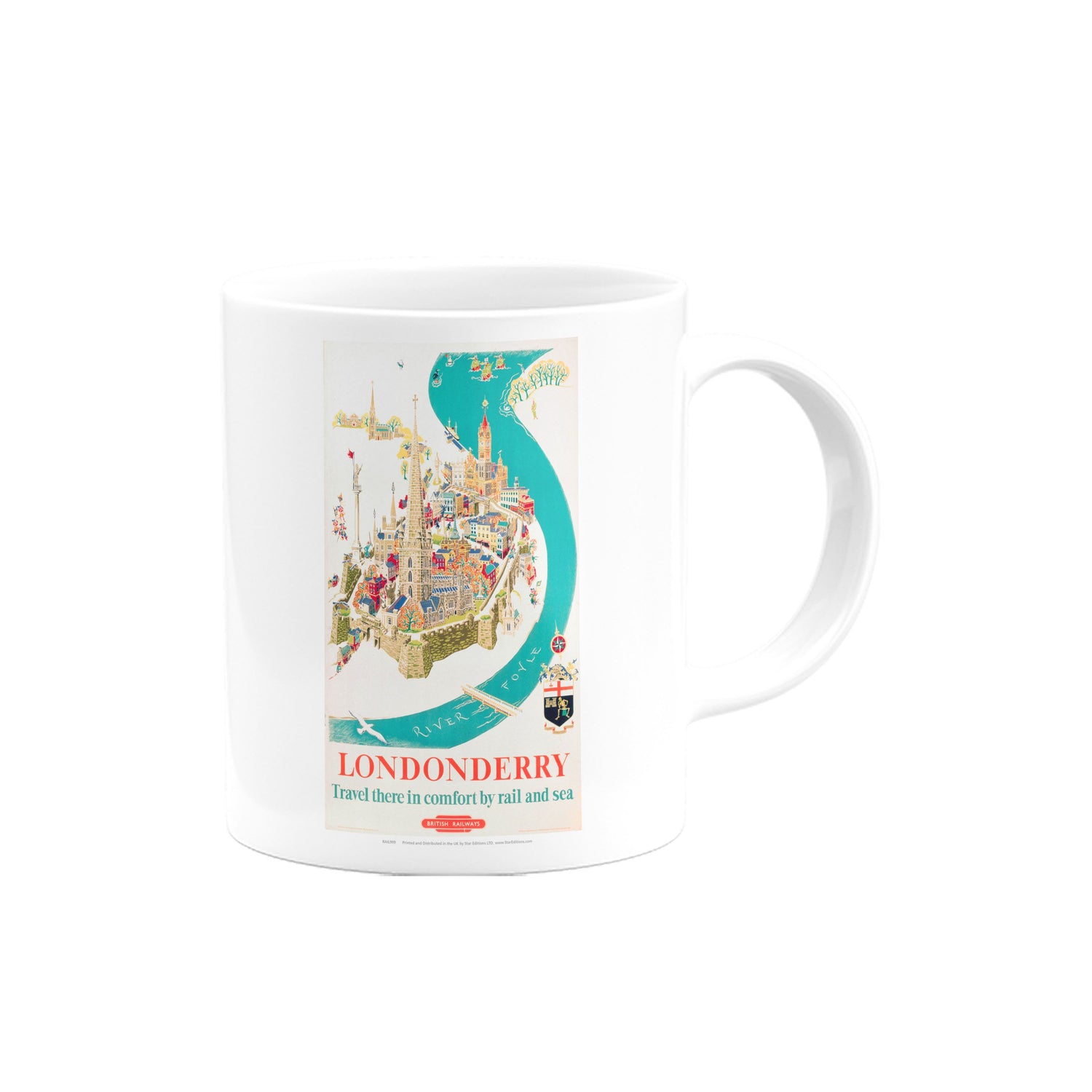 Your favourite Vintage Railway Poster design on a mug. This design of Londonderry - In comfort by rail and sea is perfect for a nice cup of tea or coffee. Great as a gift to any Railway Poster enthusiast.