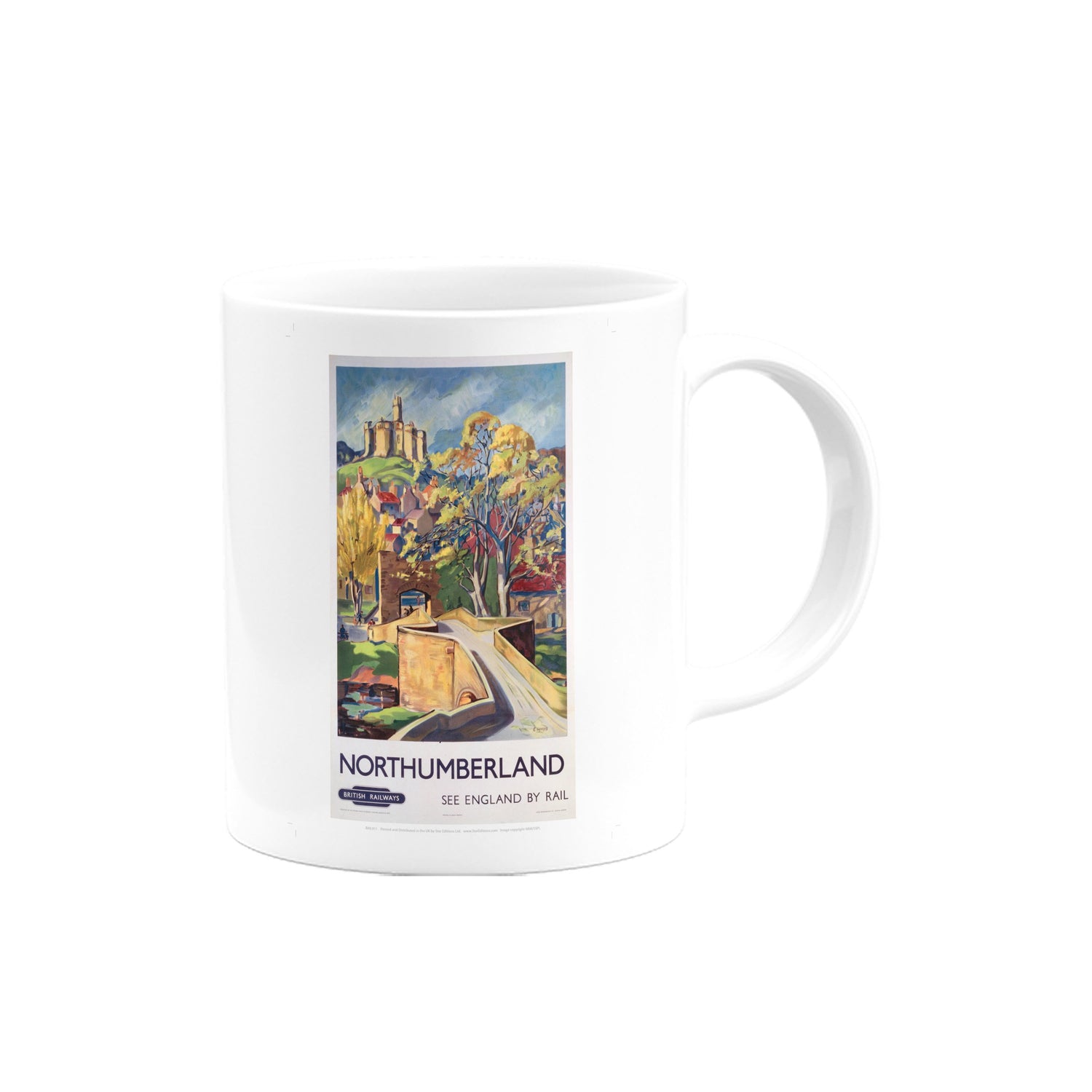 Your favourite Vintage Railway Poster design on a mug. This design of Northumberland - British railways is perfect for a nice cup of tea or coffee. Great as a gift to any Railway Poster enthusiast.