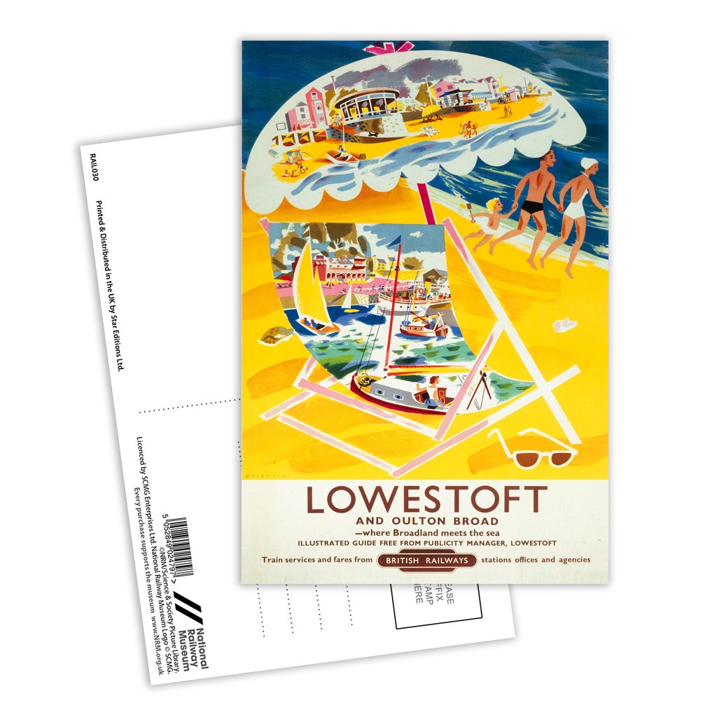 This Vintage Railway Poster postcard pack contains eight postcards. Each printed with the classic poster design of Lowestoft and Oulton Broad - Where Broadland meets the sea. All Railway Poster postcards are made from sustainable materials and is FSC accredited.