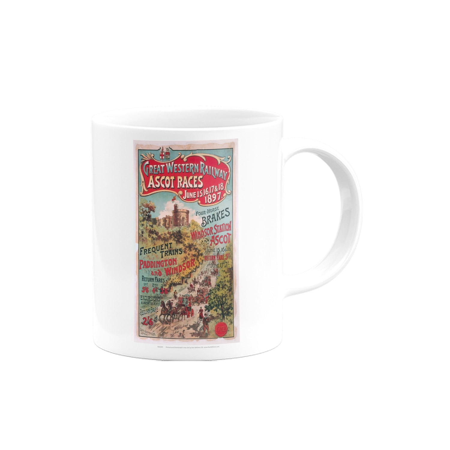 Your favourite Vintage Railway Poster design on a mug. This design of Ascot Races - 15, 16, 17 and 18 June 1897 is perfect for a nice cup of tea or coffee. Great as a gift to any Railway Poster enthusiast.