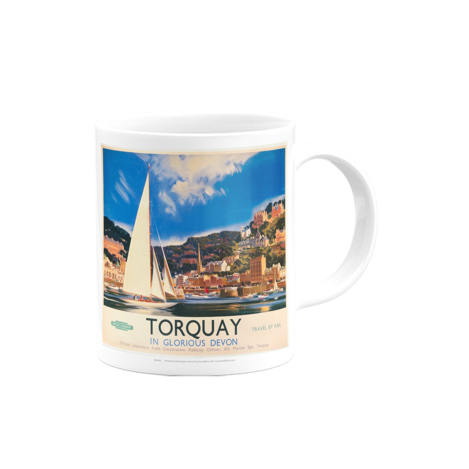 Your favourite Vintage Railway Poster design on a mug. This design of Torquay - In Glorious Devon is perfect for a nice cup of tea or coffee. Great as a gift to any Railway Poster enthusiast.