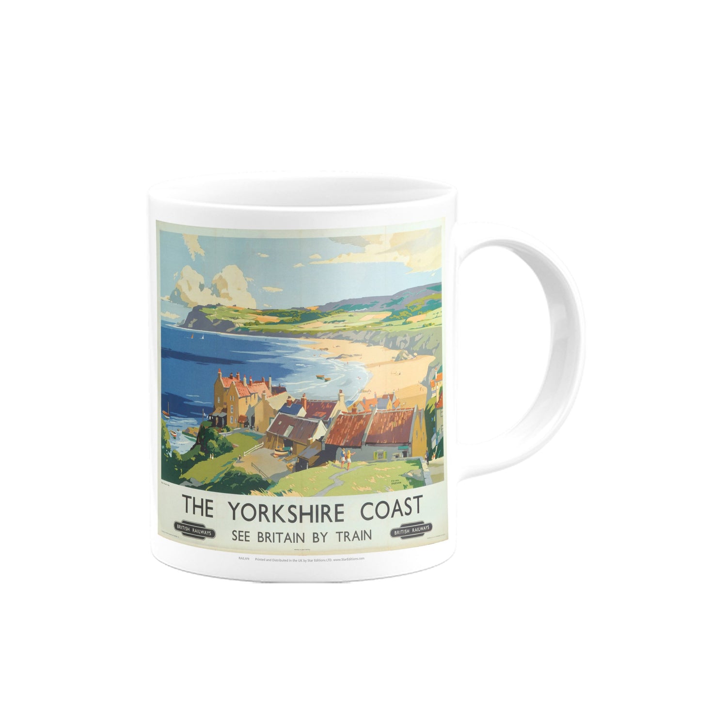 Your favourite Vintage Railway Poster design on a mug. This design of The Yorkshire Coast - Robin Hood's Bay is perfect for a nice cup of tea or coffee. Great as a gift to any Railway Poster enthusiast.