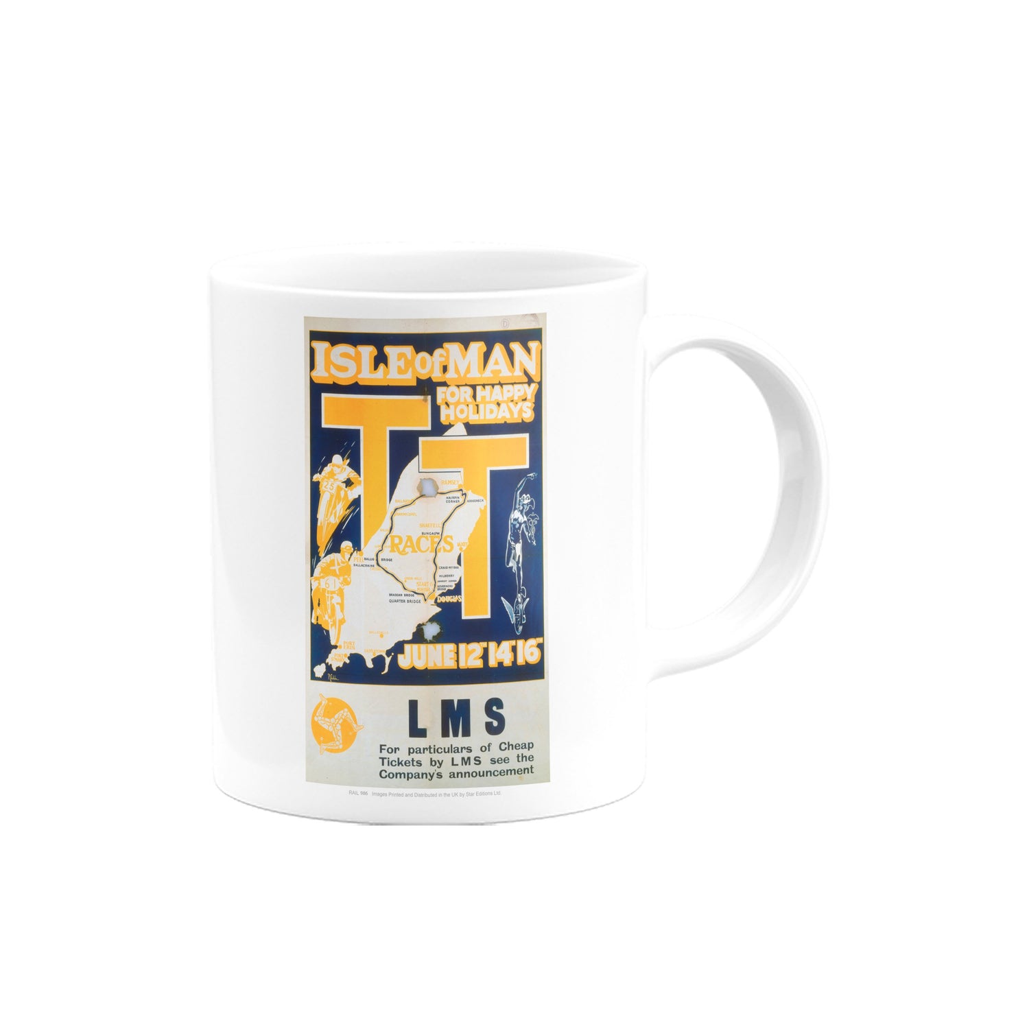 Your favourite Vintage Railway Poster design on a mug. This design of Isle Of Man for Happy Holidays - Races is perfect for a nice cup of tea or coffee. Great as a gift to any Railway Poster enthusiast.