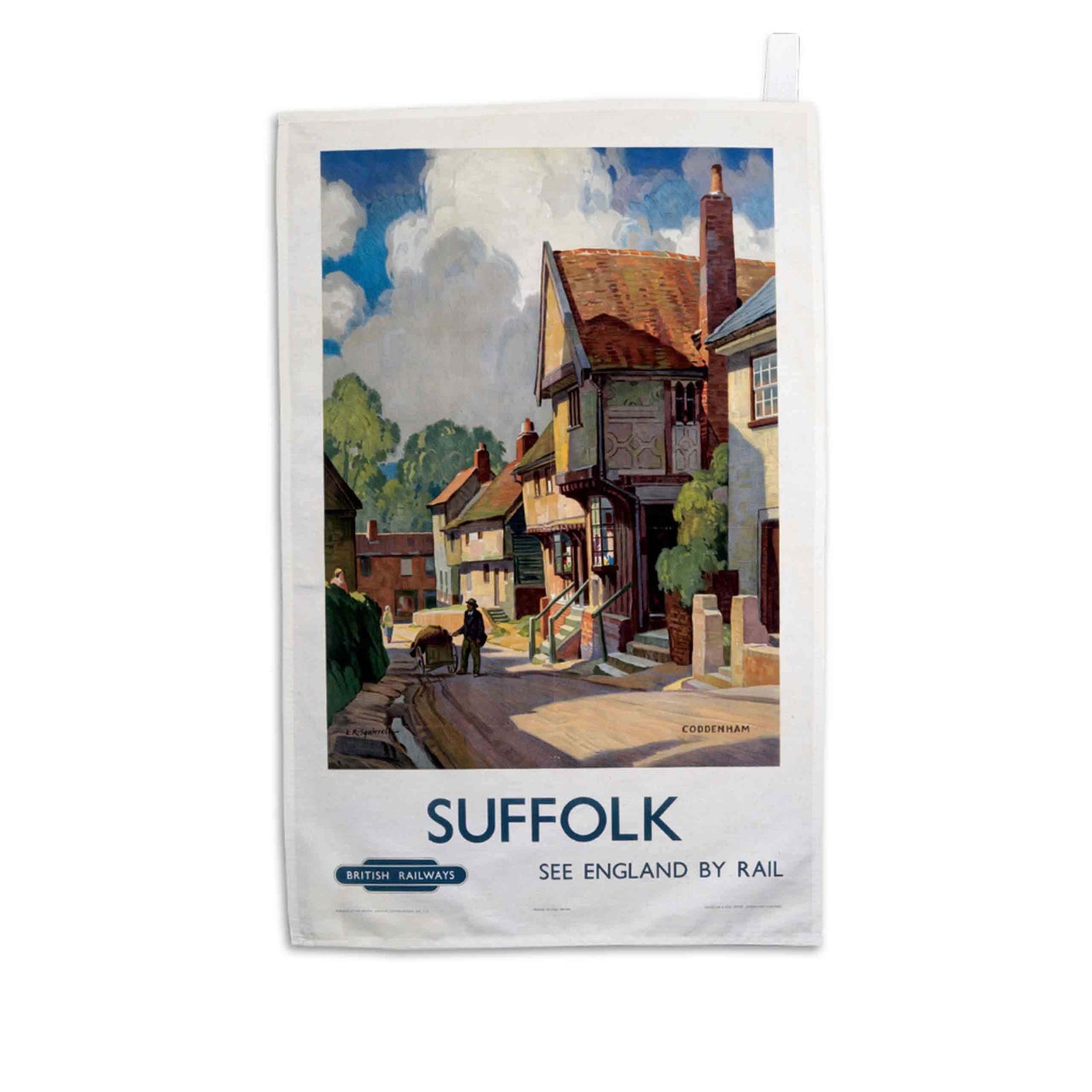 Classic Railway Poster Design on high-quality Tea Towel. This vintage rail design of Coddenham Suffolk See England By Rail will look great in any kitchen. All made from 100% cotton and hemmed on all four sides along with a handy hanging loop.