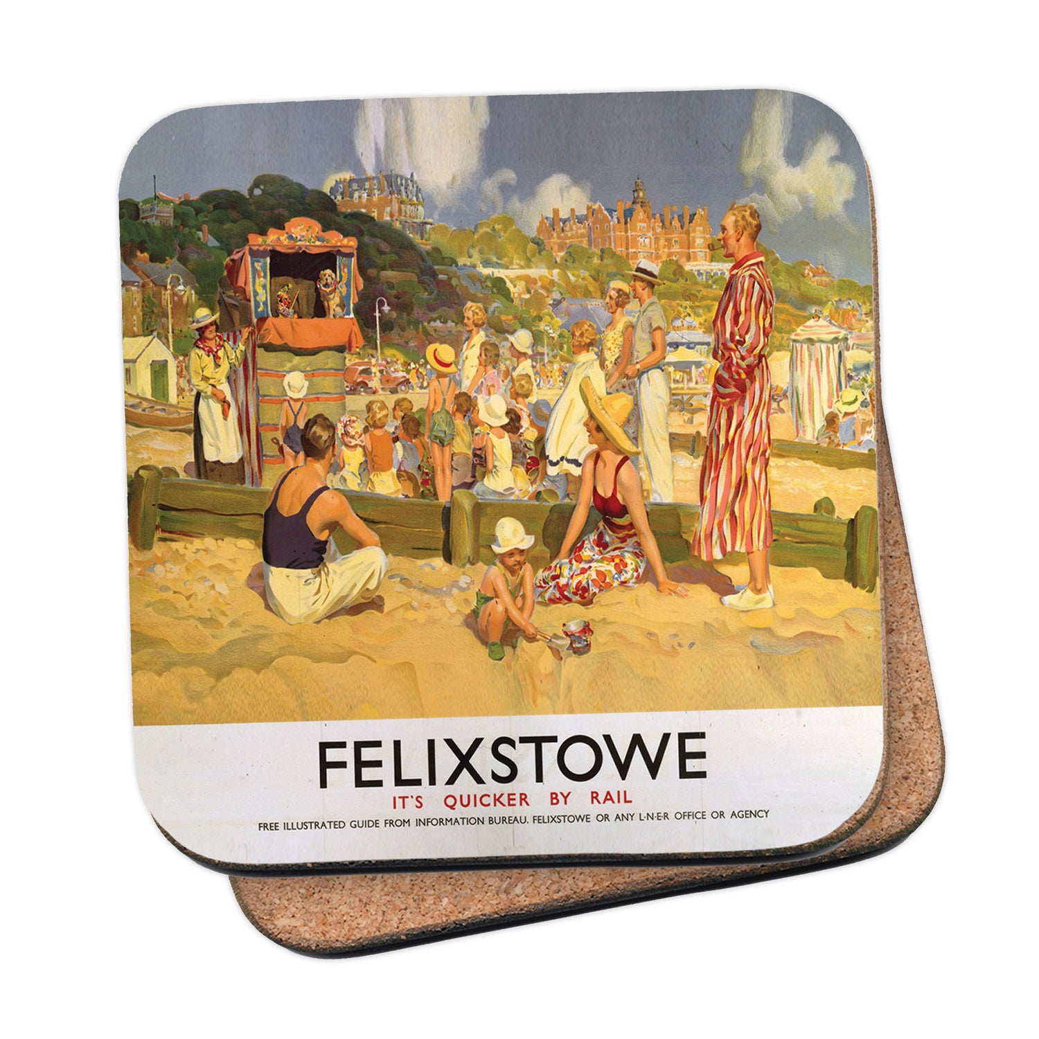 Protect your table surfaces with these durable cork coasters. Beautiful design of Felixstowe LNER- It's Quicker By Rail. Perfect for any Railway Posters enthusiast.