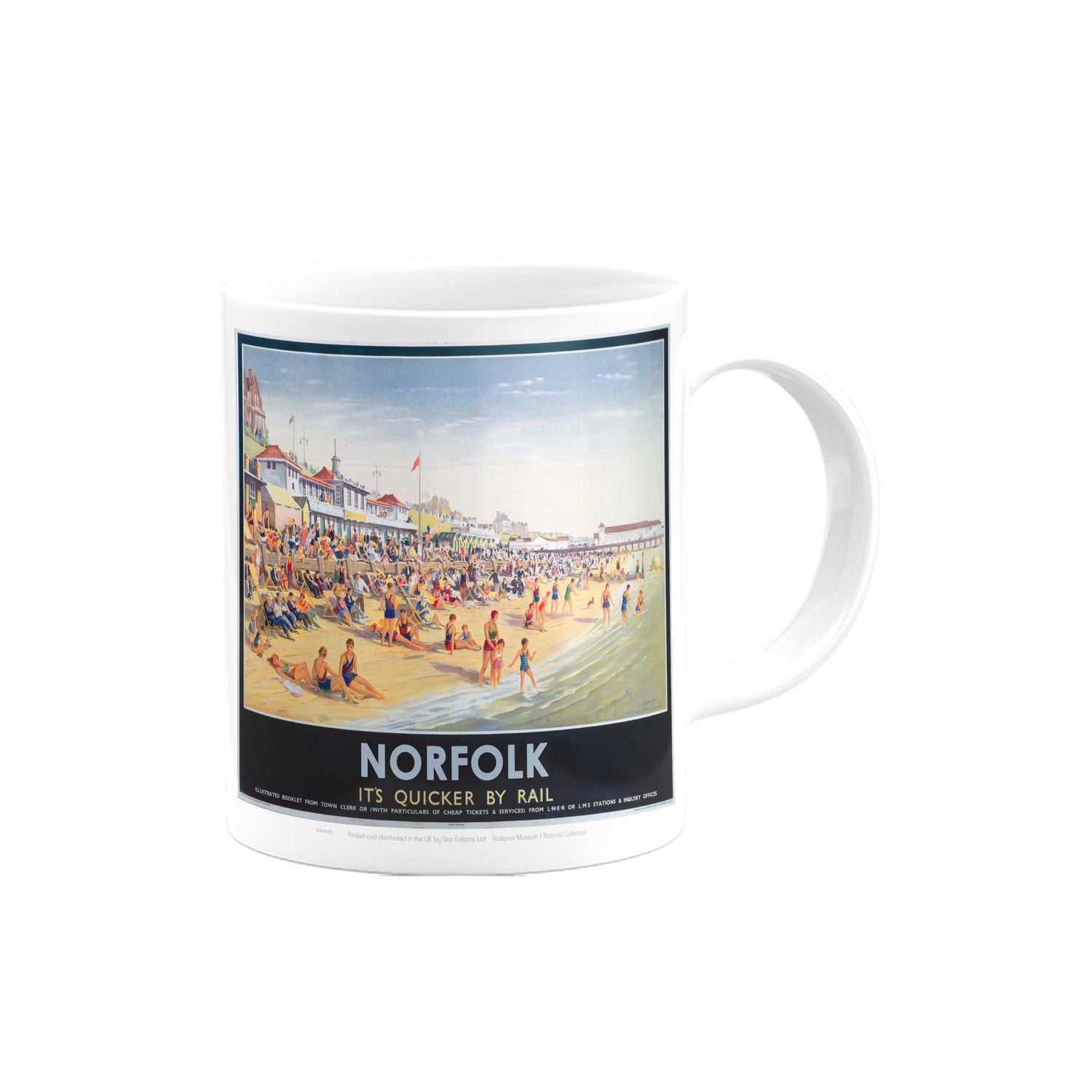 Your favourite Vintage Railway Poster design on a mug. This design of Norfolk - Quicker By Rail is perfect for a nice cup of tea or coffee. Great as a gift to any Railway Poster enthusiast.