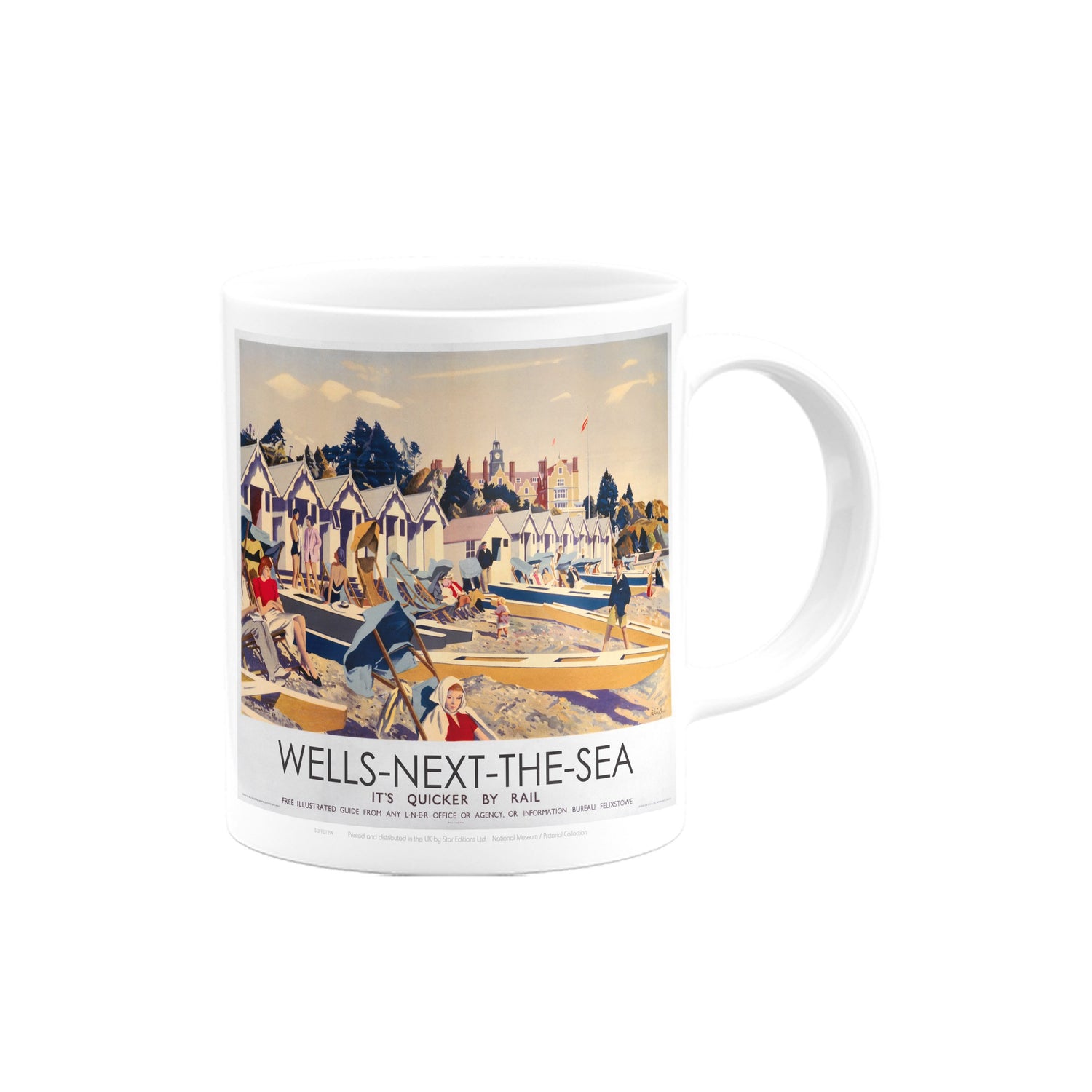 Your favourite Vintage Railway Poster design on a mug. This design of Wells-Next-The-Sea - Quicker By Rail is perfect for a nice cup of tea or coffee. Great as a gift to any Railway Poster enthusiast.