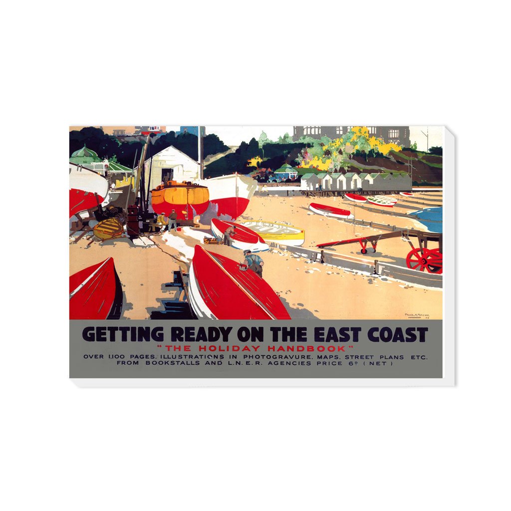 Vintage Railway Poster Canvas Wall Art of Getting Ready on the East Coast. Canvases are available in multiple sizes and are all made from eco-friendly FSC accredited materials. All Railway Poster Canvases are made of the best quality materials and are proudly printed in the UK