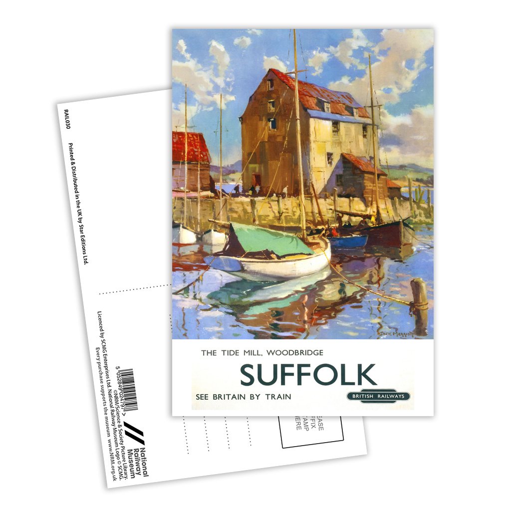 This Vintage Railway Poster postcard pack contains eight postcards. Each printed with the classic poster design of The Tide Mill, Woodbridge - Suffolk See Britain By Train. All Railway Poster postcards are made from sustainable materials and is FSC accredited.