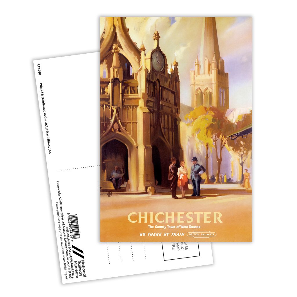 This Vintage Railway Poster postcard pack contains eight postcards. Each printed with the classic poster design of Chichester Cathedral West Sussex. All Railway Poster postcards are made from sustainable materials and is FSC accredited.